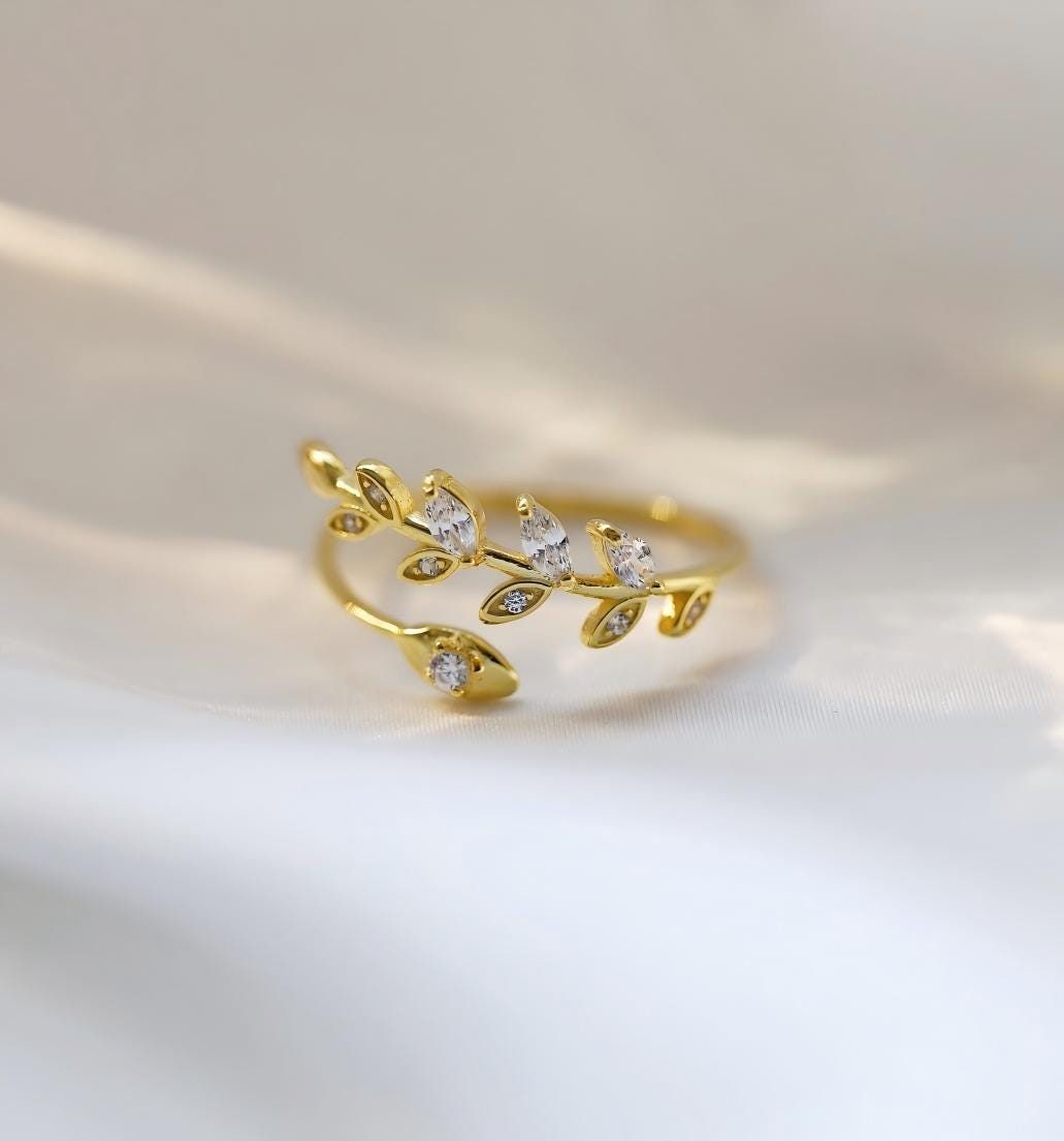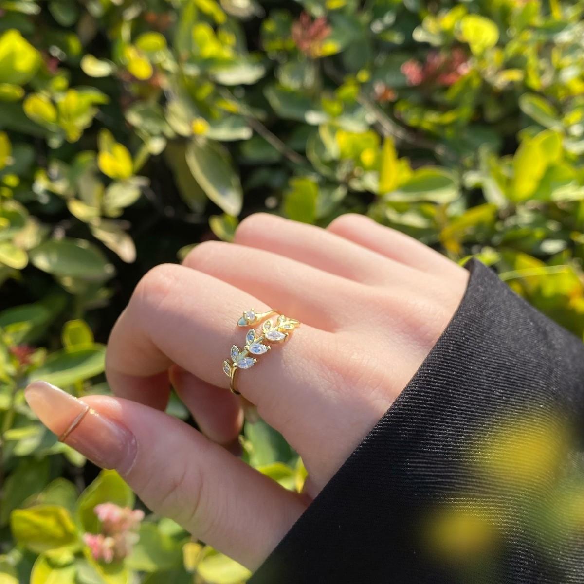 Taking inspiration from 'Spring Leaf Language', the light leaf shape is integrated into the ring design. The scattered diamond ornaments are like morning dew between leaves, using the warm luster of 14K gold to restore the dynamic rhythm of plant growth, turning "natural vitality" into wearable poetic symbols, conveying a fresh and healing aesthetic of life.
