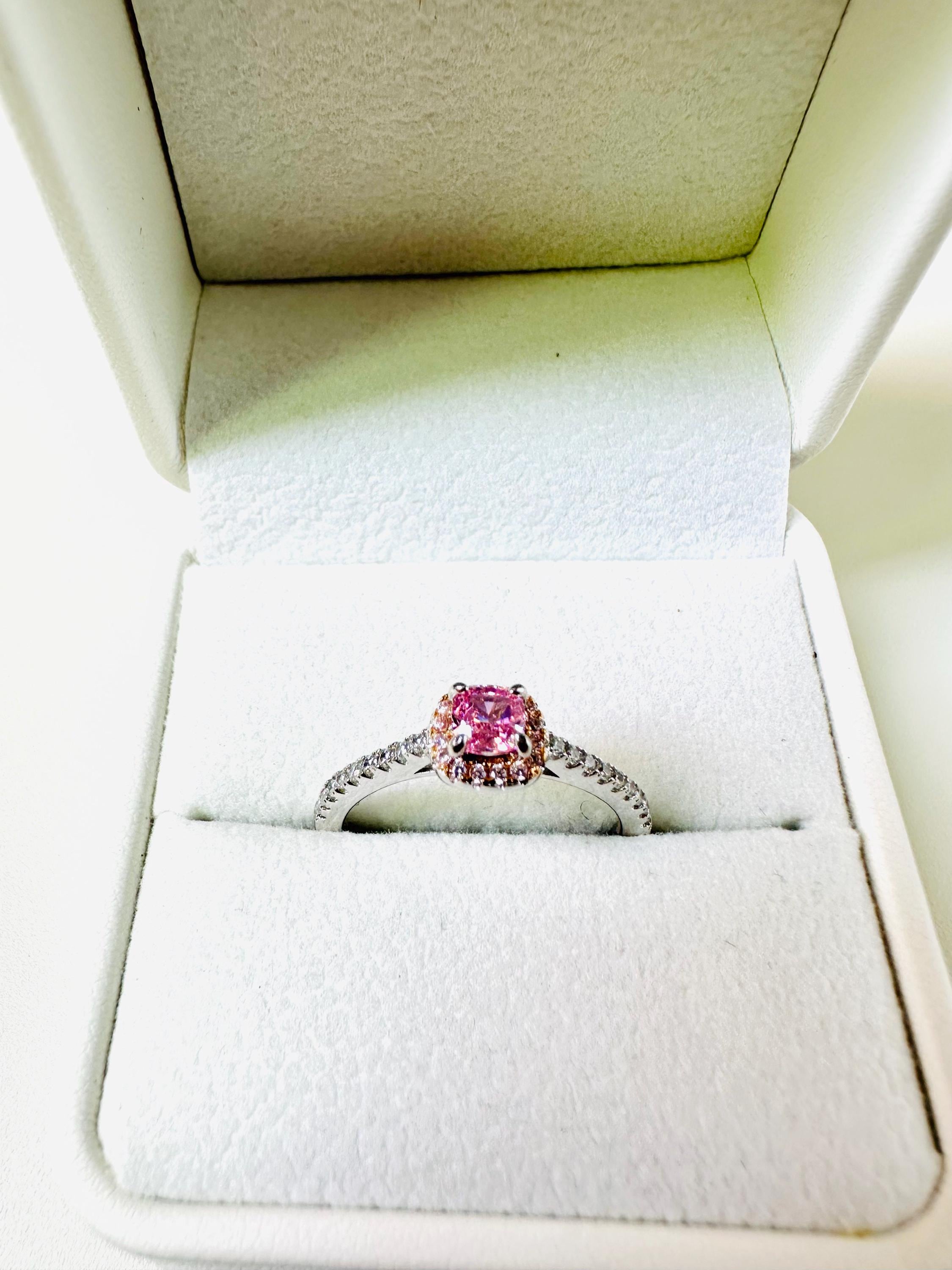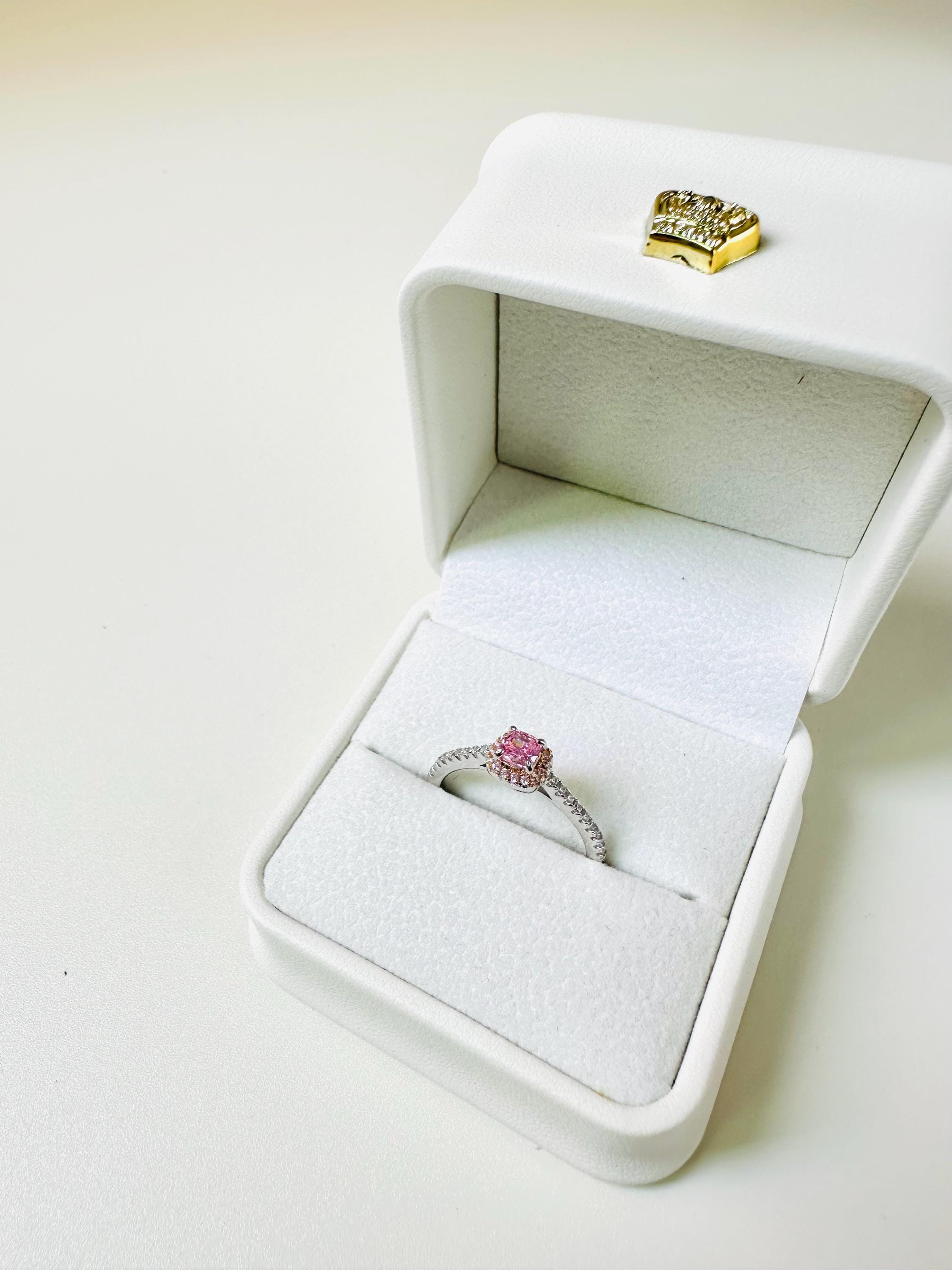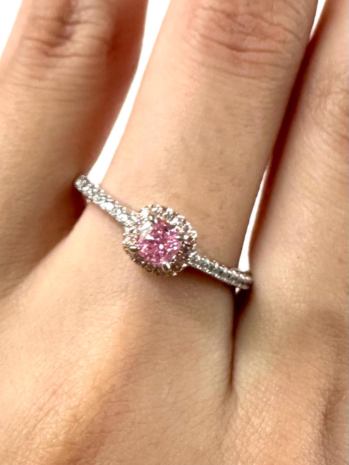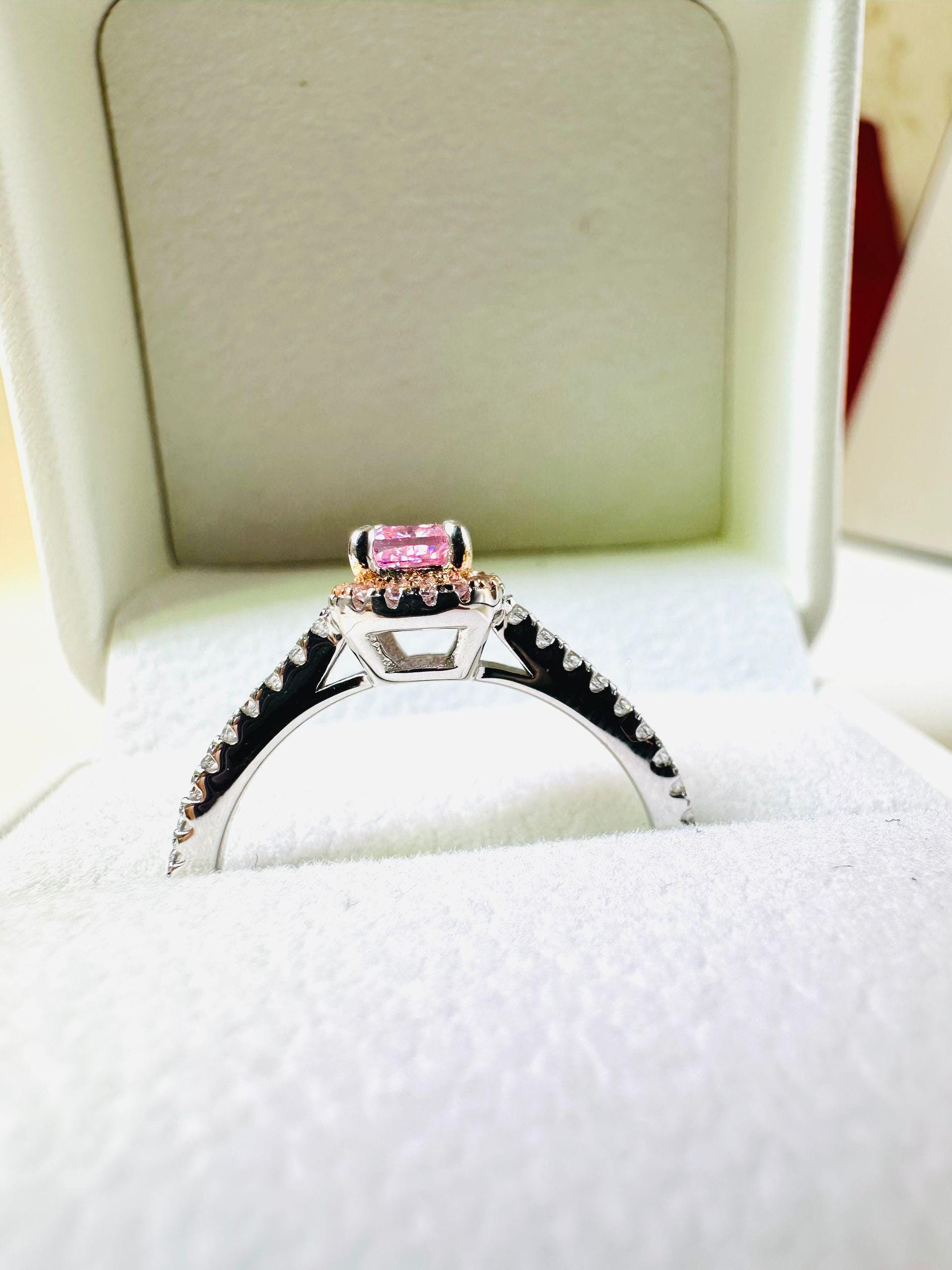 Product advantages 1. Unique Colors: Rare square pink diamonds with soft and recognizable colors, equipped with romantic filters, easily becoming the visual focus; 2. Exquisite craftsmanship: The surrounding pink diamonds are arranged neatly, the ring arm diamond inlay is firm, the metal connection is smooth, and the details demonstrate the quality of craftsmanship; 3. Style adaptation: Combining sweetness and delicacy, it can blend with various styles of dressing, and can be adapted to both daily and special occasions to shine.