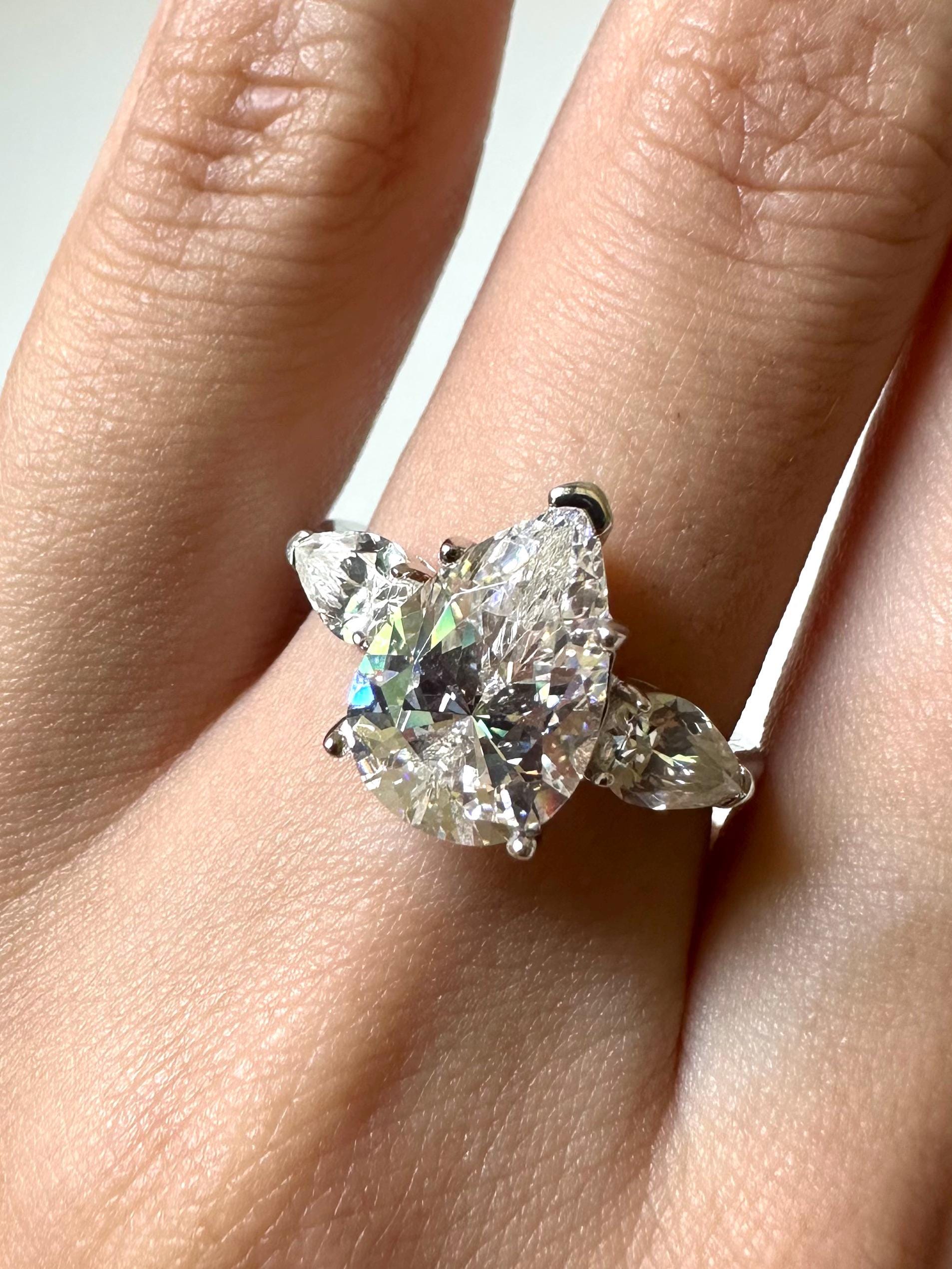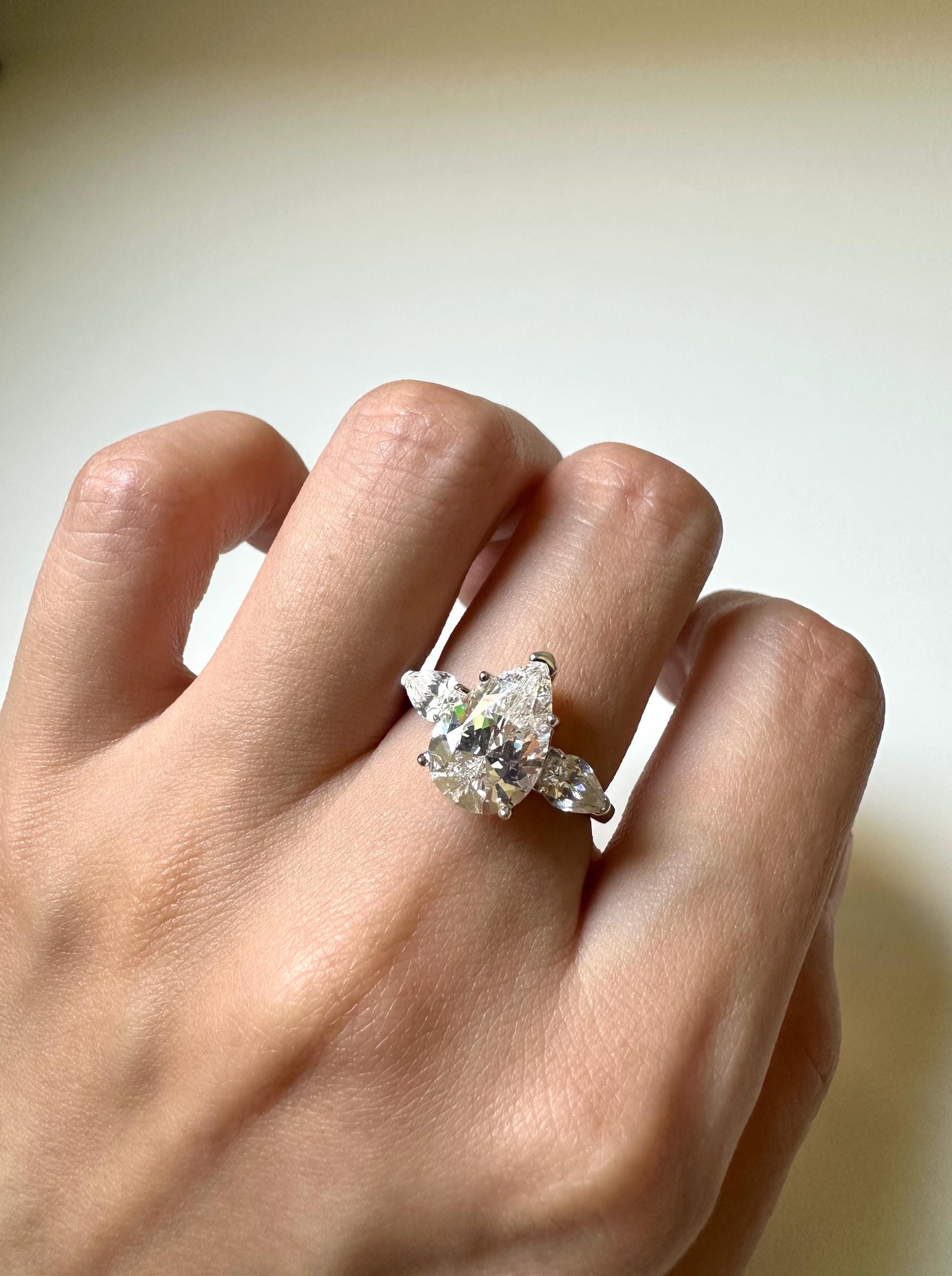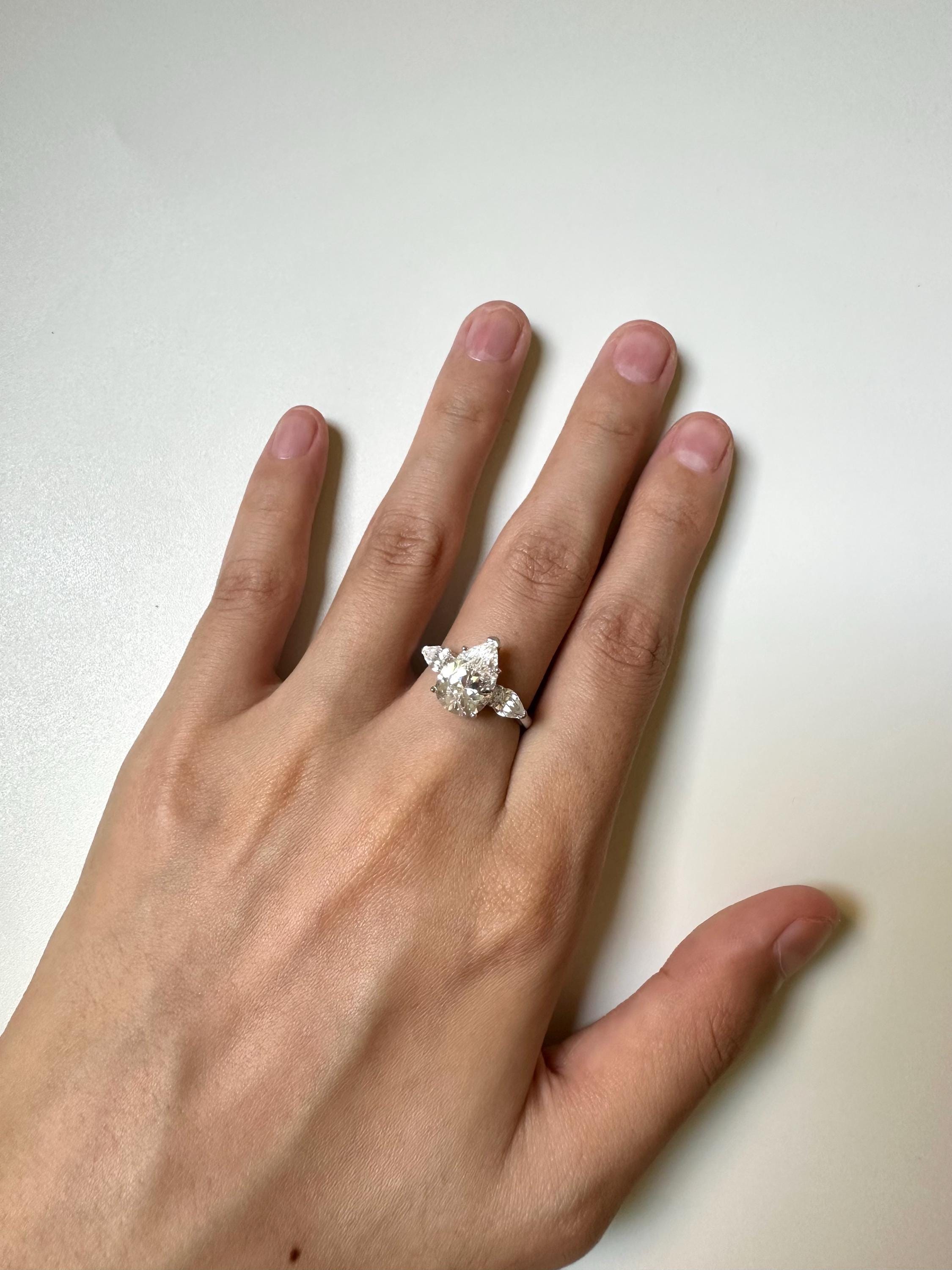 Product advantages 1. Diamond combination: The pear shaped main diamond focuses on the visual aspect, showcasing the advantages of diamond fire color. The horse eye secondary diamond extends the lines, enhancing the sparkling level. The combination of multiple diamond types enhances the overall sense of luxury. 2. Exquisite craftsmanship: Precise claw inlay technology, stable diamond inlay, while maximizing diamond luster, showcasing craftsmanship in details, ensuring durability during wear. 3. Strong sense of value: The unique diamond design distinguishes it from conventional styles, combining wearing aesthetics and collection value, meeting the demand for unique jewelry.