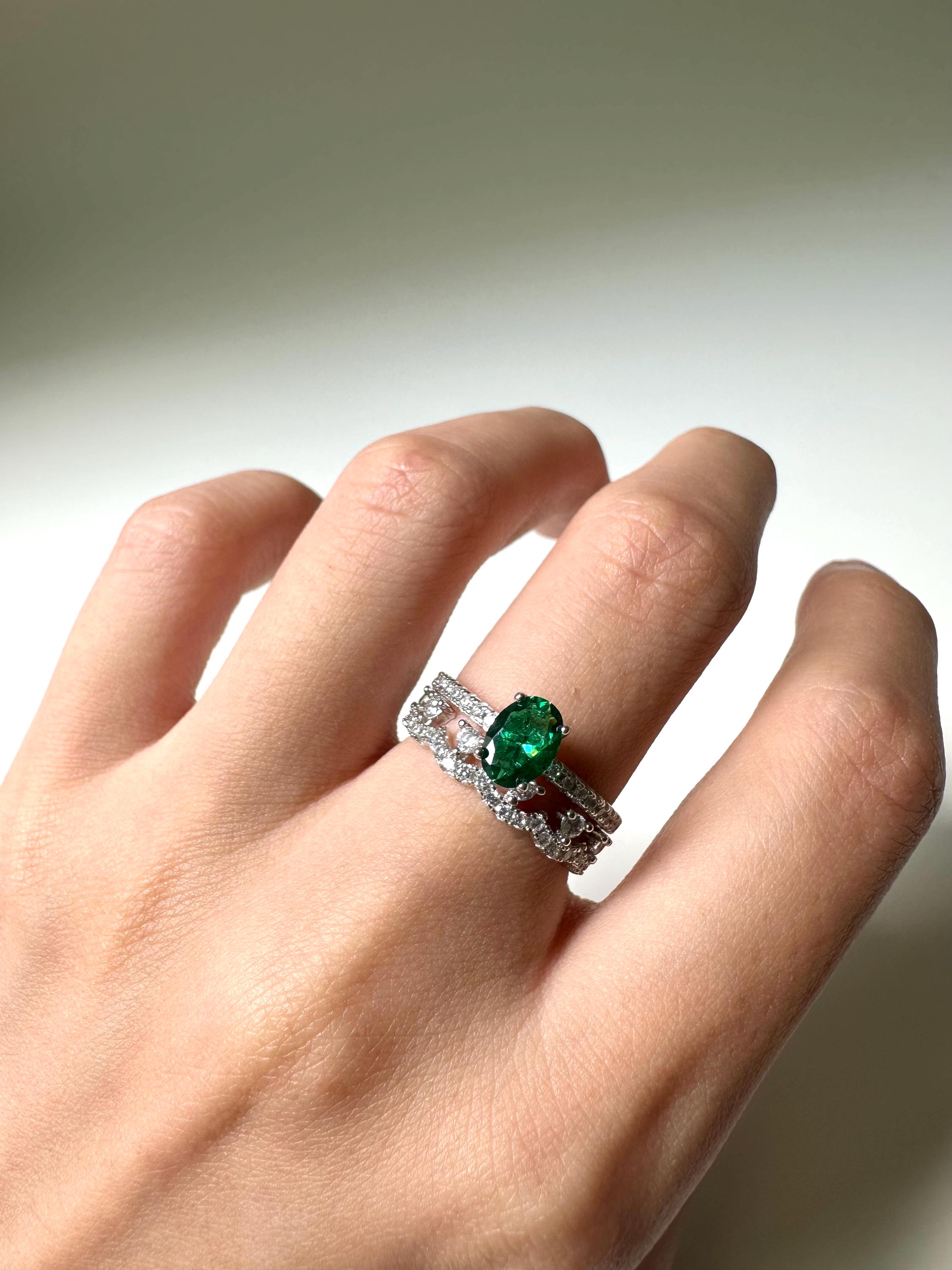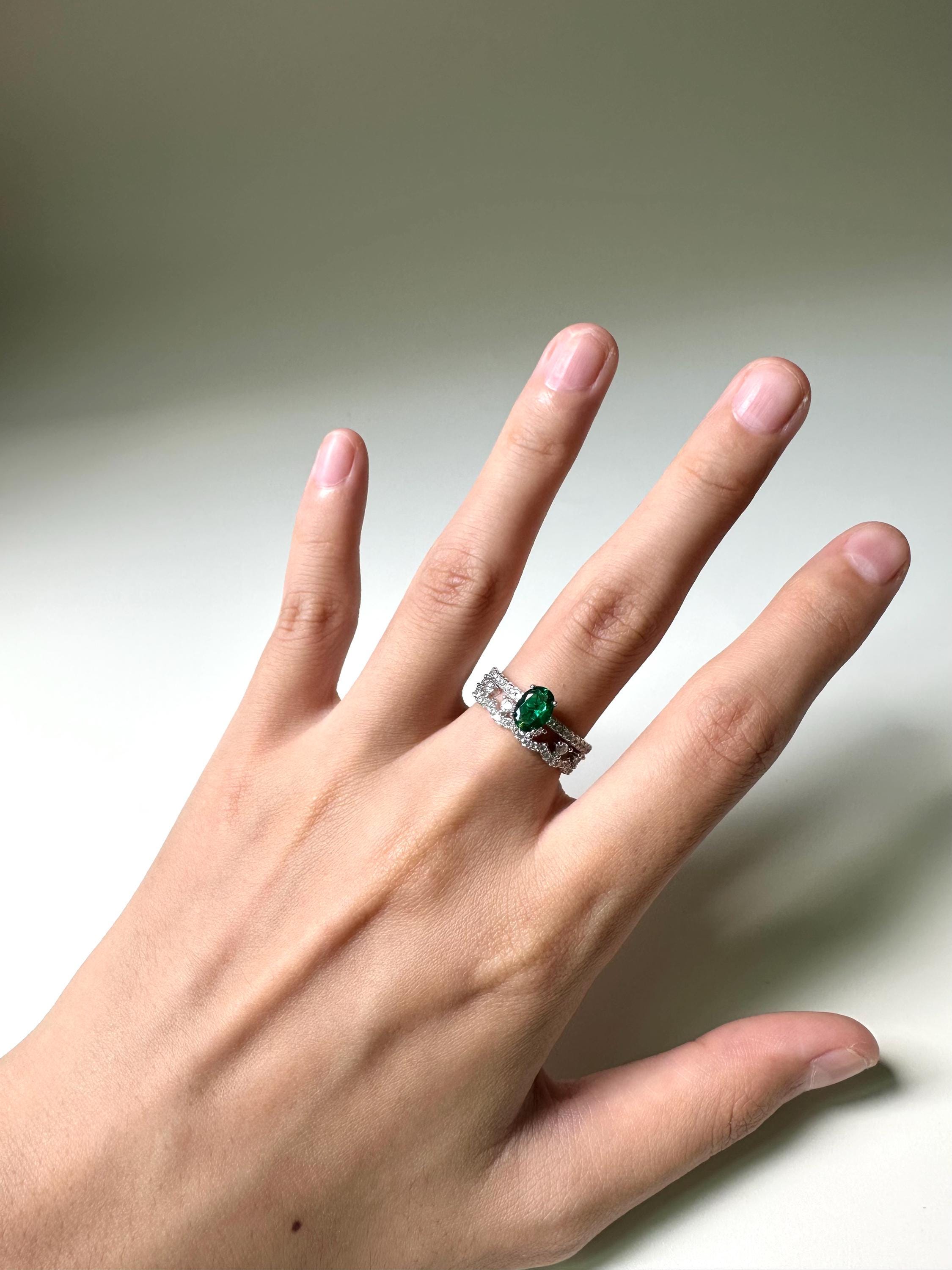 Taking rich emerald green as the soul, drawing on natural vitality and mysterious energy, the ring arm is adorned with dual color gold diamonds that blend with the dawn and sunset afterglow, breaking the boundaries of conventional colors. Combining natural poetry with fashionable ingenuity, using gemstones to convey the pursuit of vitality and unique aesthetics, creating jewelry that combines storytelling and visual tension, becoming an extension of the wearer's personality and charm.