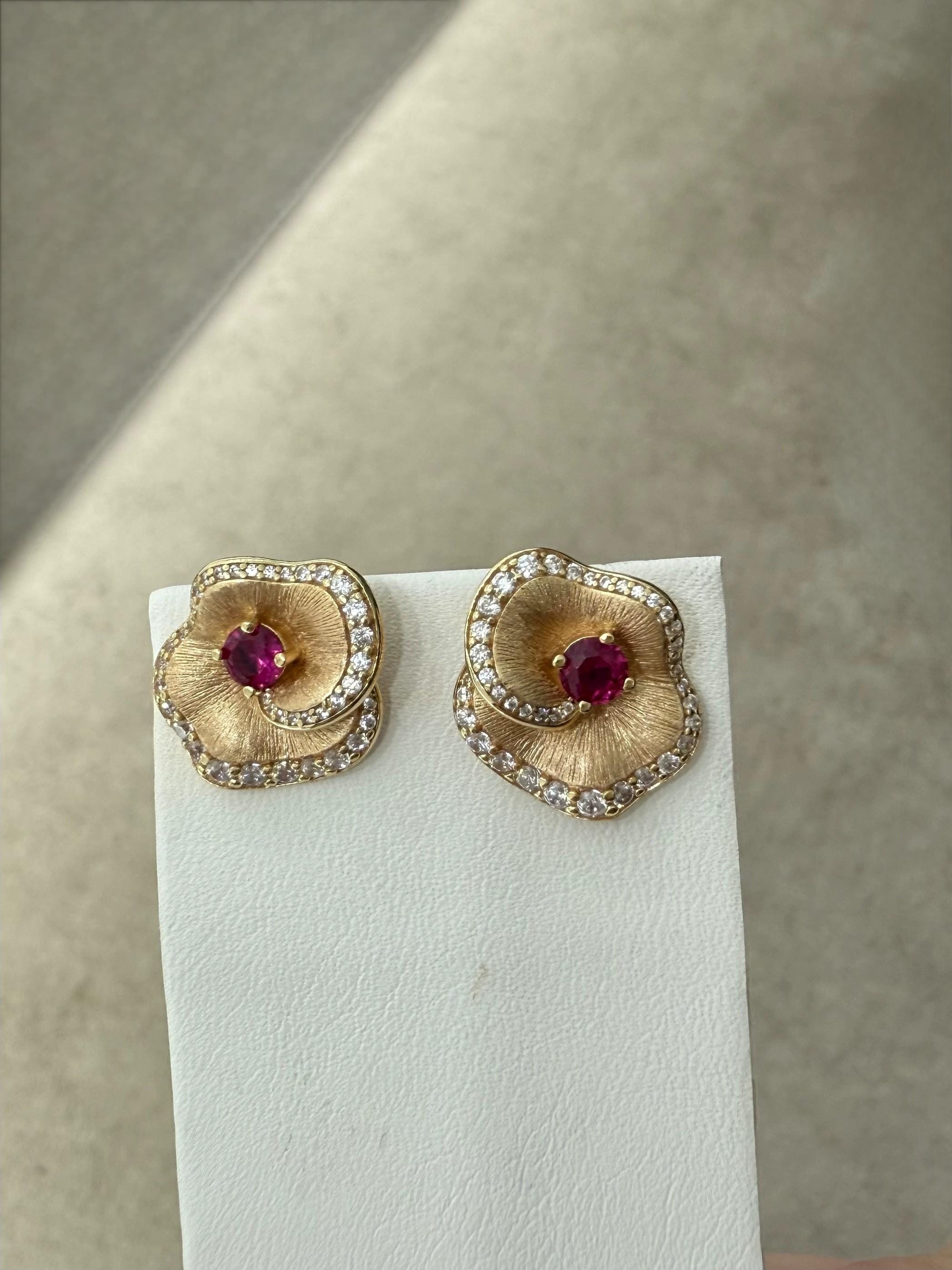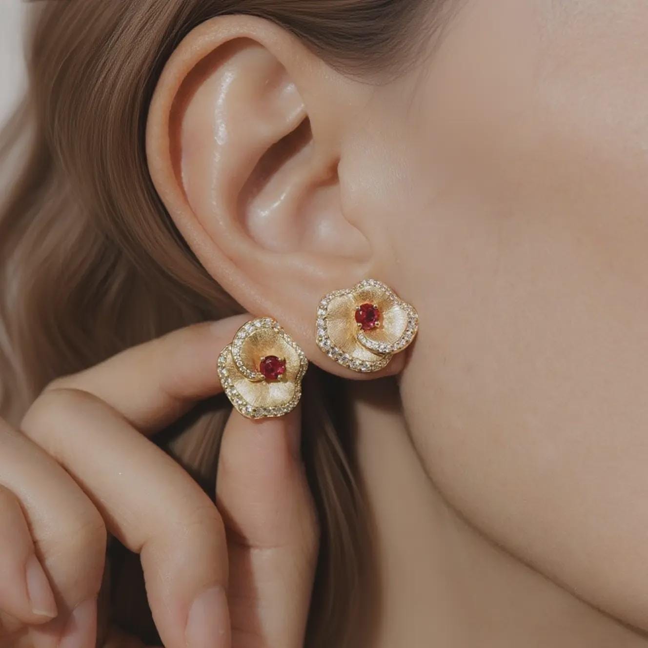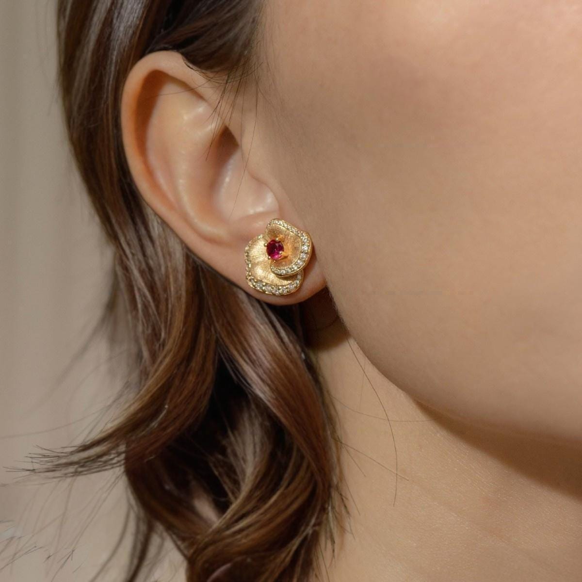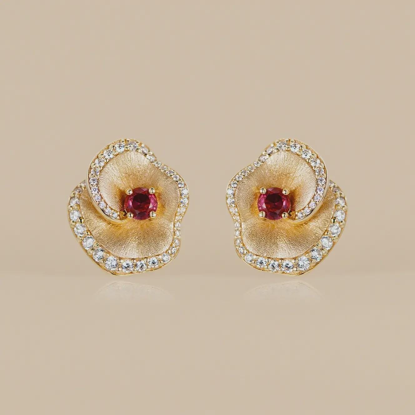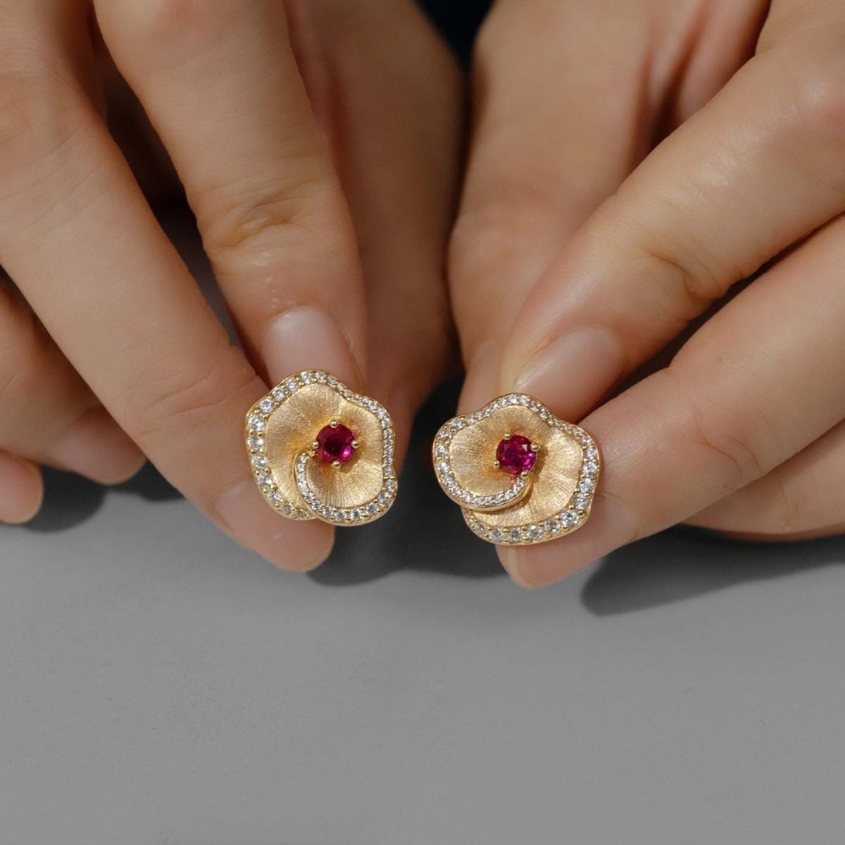 Product advantages 1. High-quality material: selected 18K gold, not easy to oxidize and fade, long-lasting luster; Inlaid with natural high-quality rubies and high-clarity diamonds, it is rich in color, brilliant in fire and of outstanding quality. 2. Wide adaptation to the scene: the flower shape is romantic and elegant, which is suitable for daily matching and adds a sense of sophistication to the outfit; It can also be worn on formal occasions such as dinners and weddings to enhance the overall aura and easily adapt to a variety of styles and scenes.