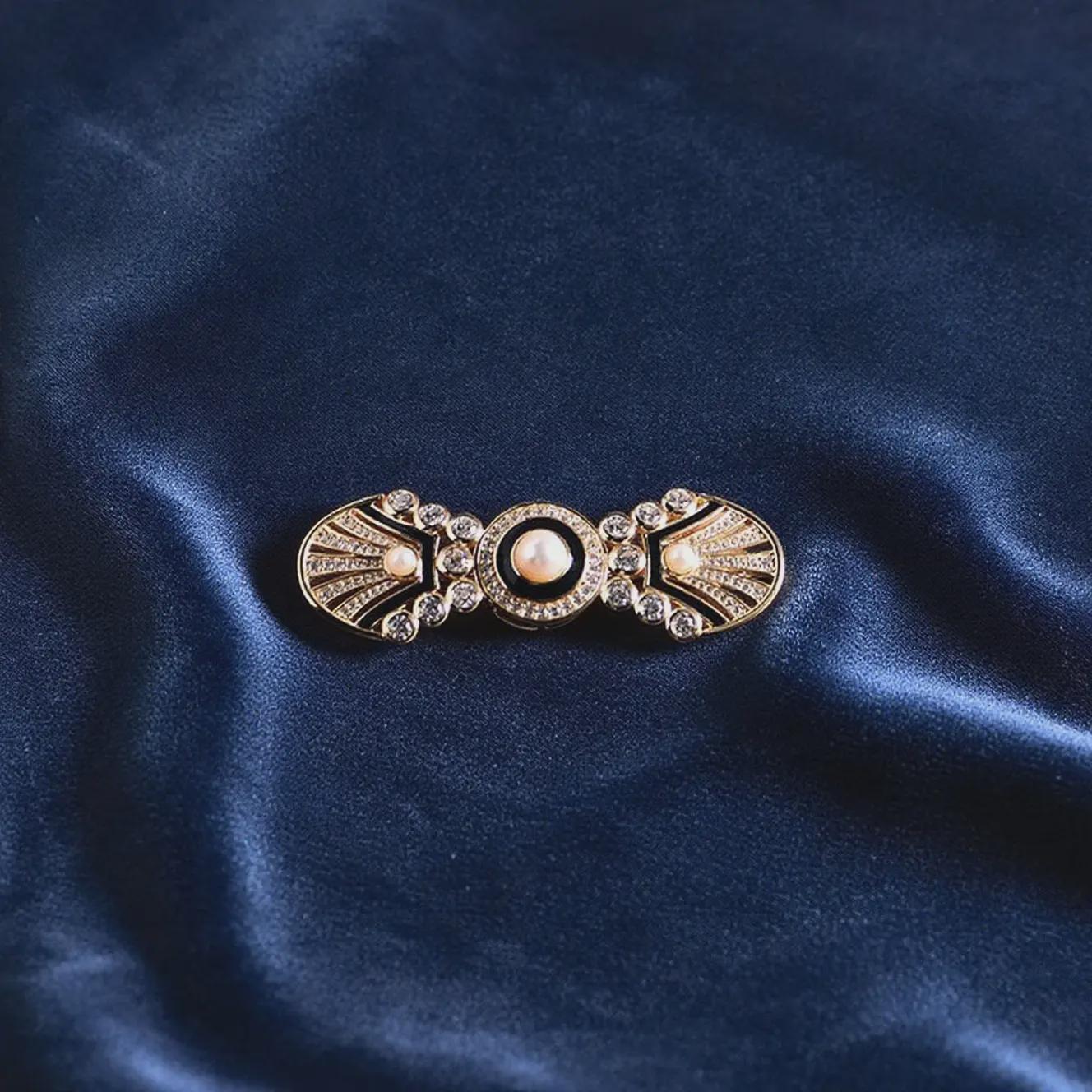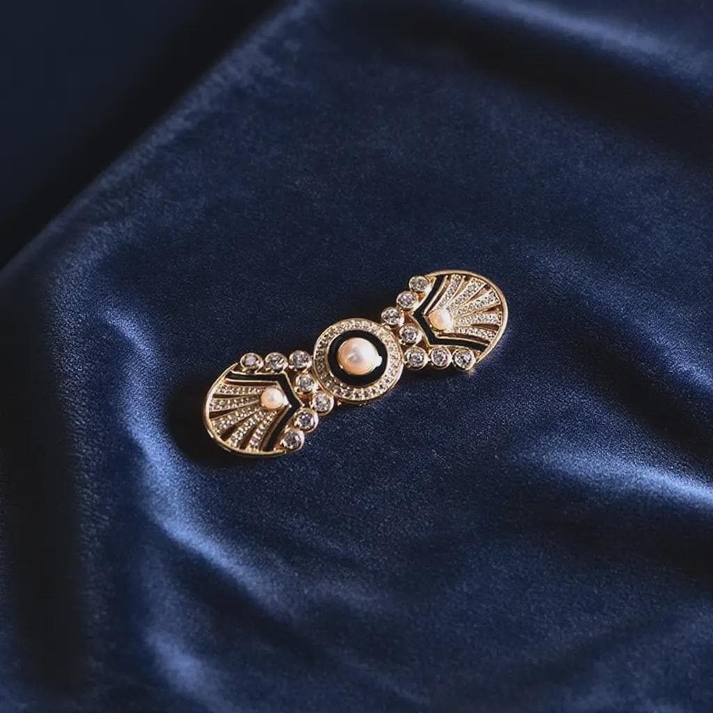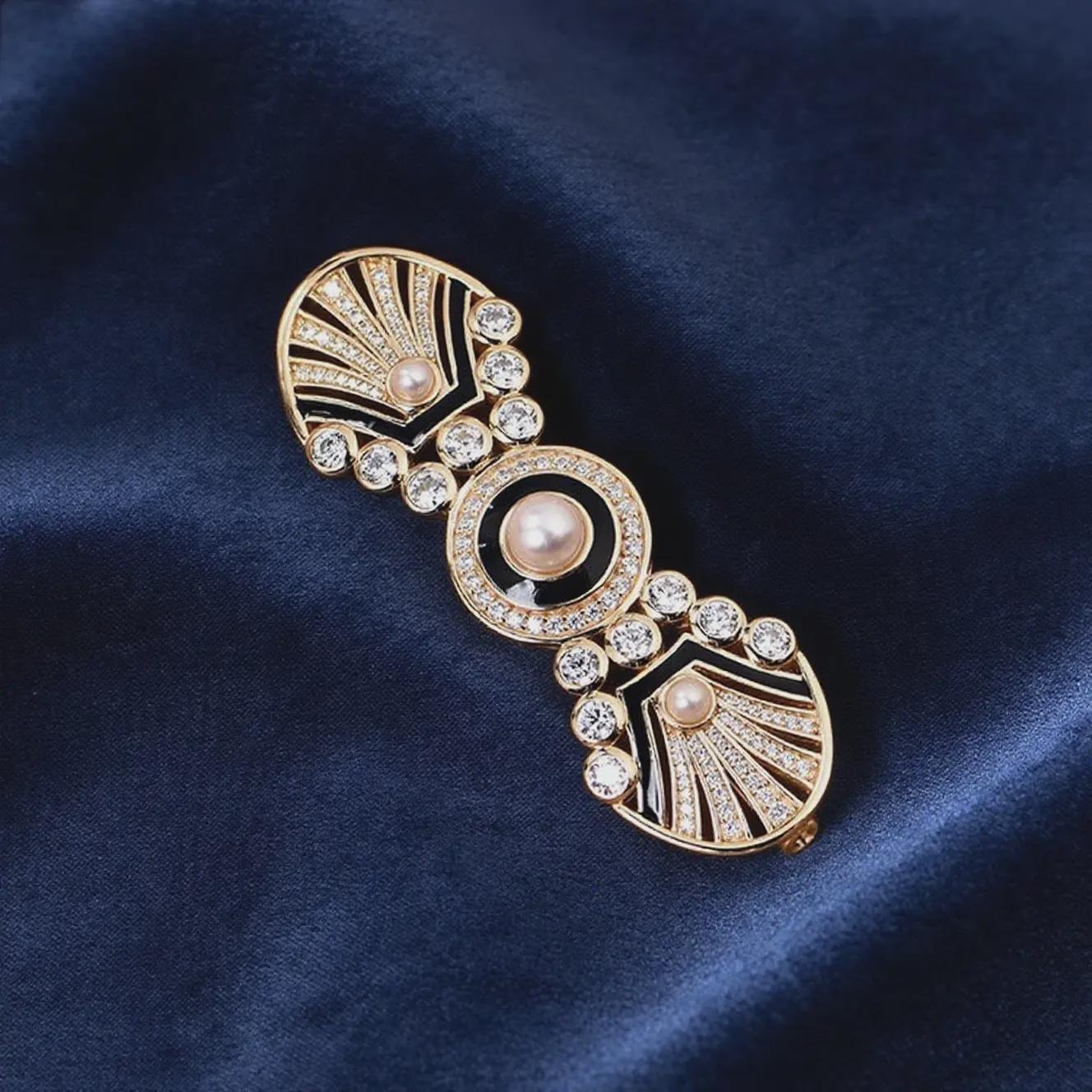 Product advantages 1. Unique and versatile: Art Deco design, retro and fashionable, can be matched with a variety of styles of clothing, whether it is an elegant dress, or a simple daily wear, it can add color to the overall look and enhance the sense of luxury of the outfit. 2. High-quality material texture: selected pearls, zircon and other materials, exquisite craftsmanship, pearls are warm and soft, imitation diamonds shine dazzlingly, black and gold color matching is classic and atmospheric, and the overall texture is excellent, highlighting the wearer's taste and style.