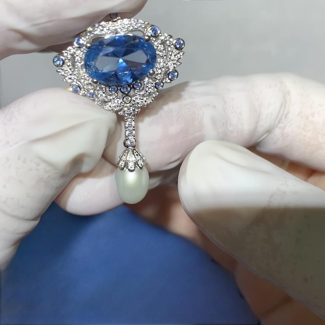 1. Unique and eye-catching design: The combination of blue spinel, diamond and pearl is extremely rare, and the shape is exquisite and gorgeous, both mysterious and noble, which can instantly catch the attention of others, become the finishing touch of the overall look, and highlight the wearer's extraordinary taste.