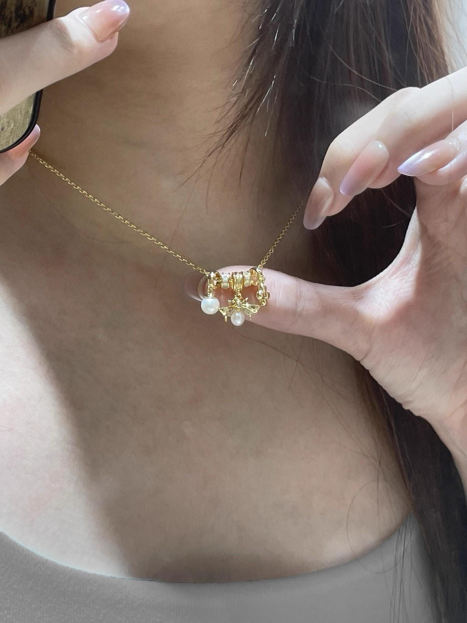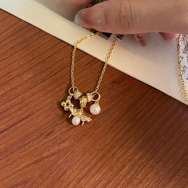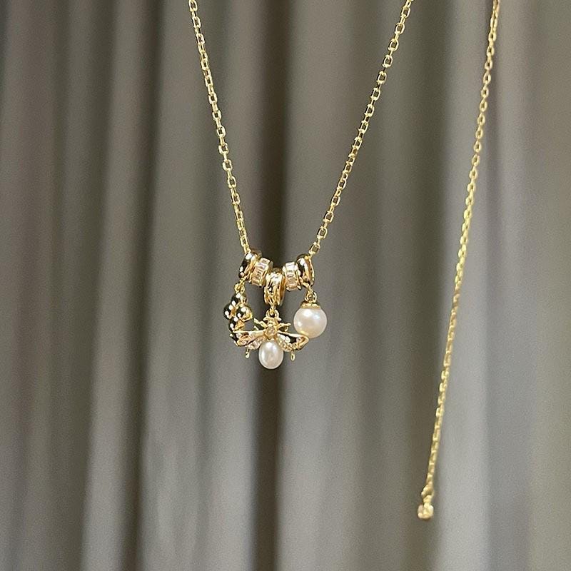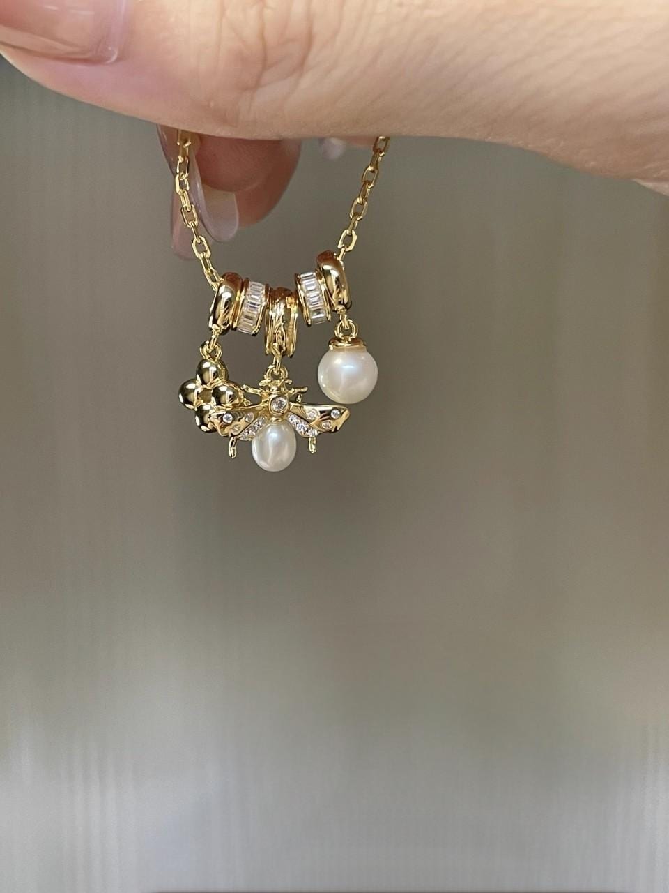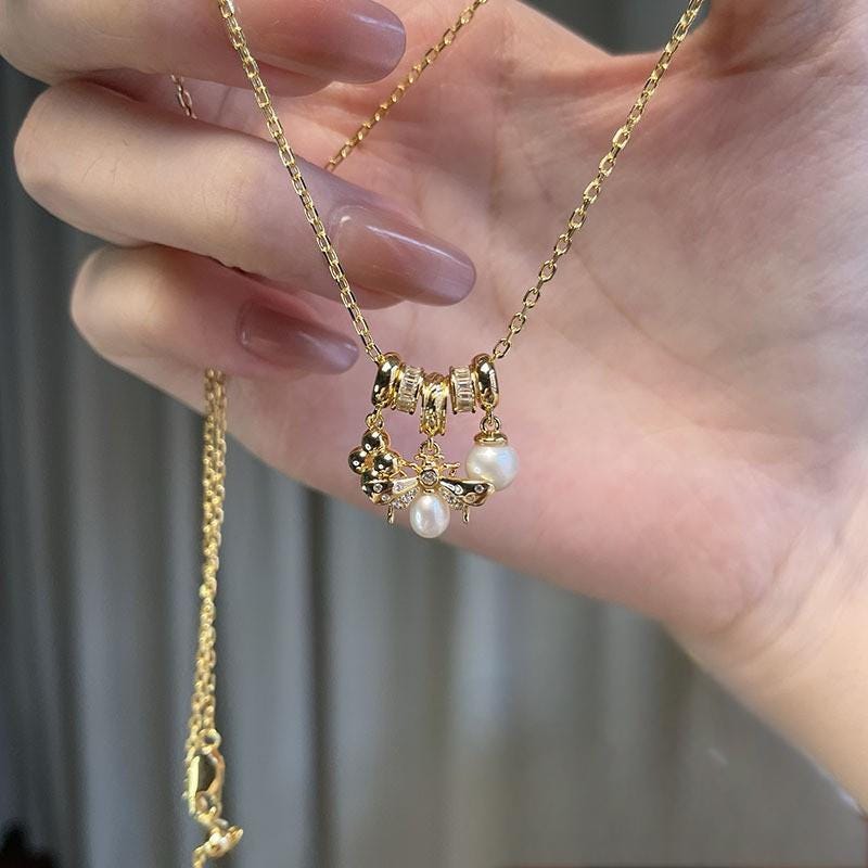 Product advantages 1. Chic: The combination of bees and pearls is novel and unique, breaking the monotony of conventional necklace design, easily becoming an eye-catching point in the outfit and showing the wearer's unique aesthetics. 2. Versatile style: The gold chain is matched with pearls and bee elements, which is suitable for matching sweet style clothing and creating a sense of freshness; It can also be paired with simple commuter wear to add exquisite details and adapt to a variety of styles and occasions.