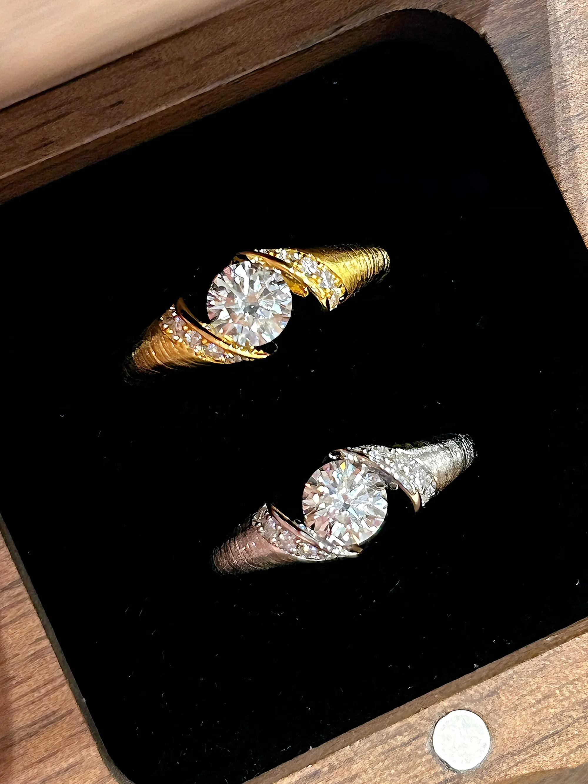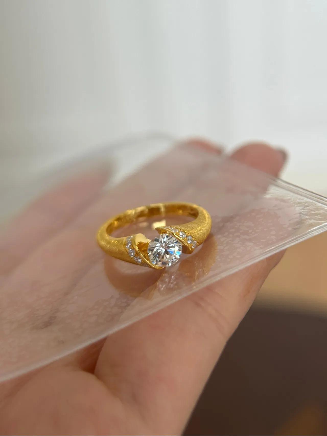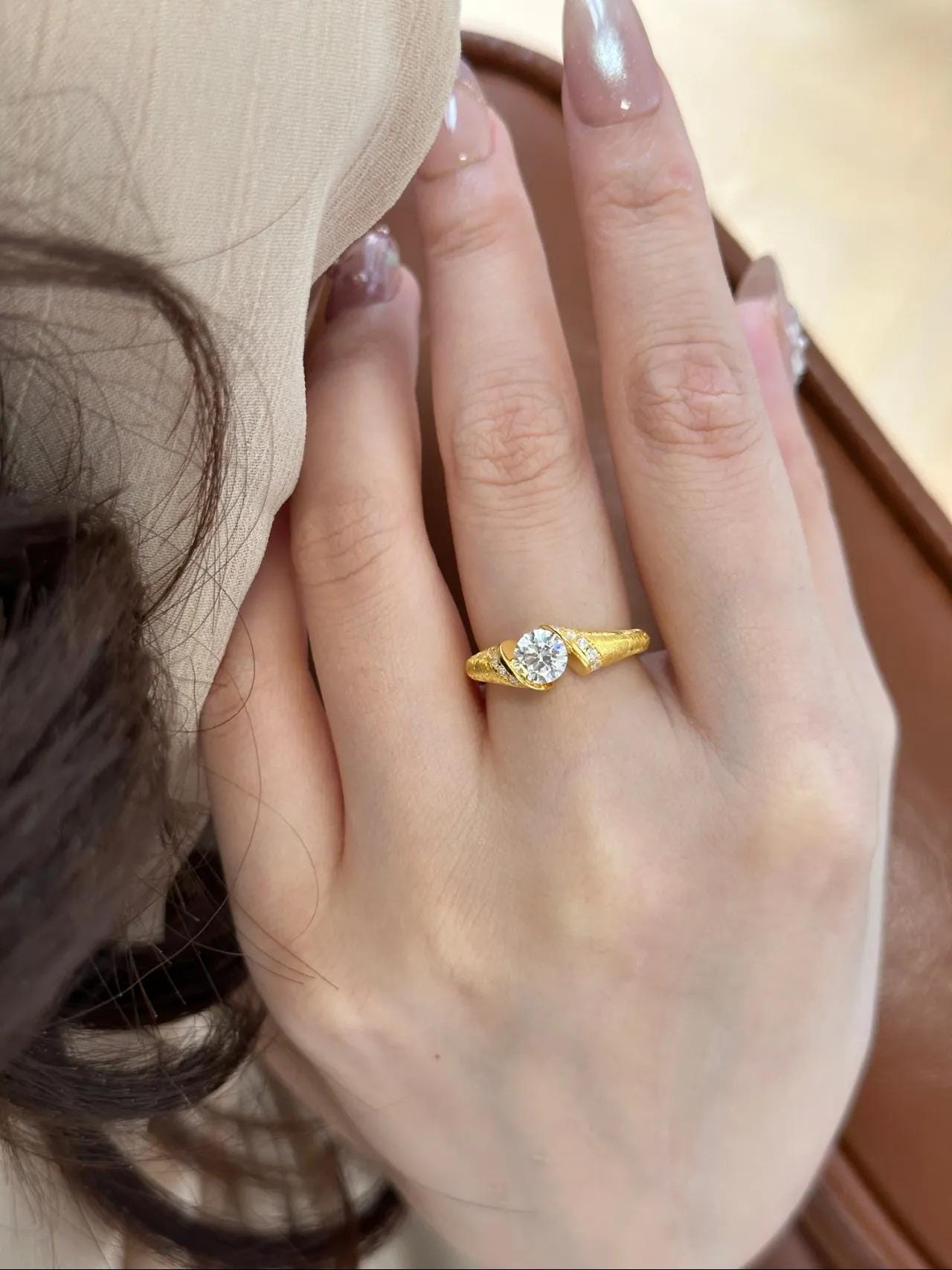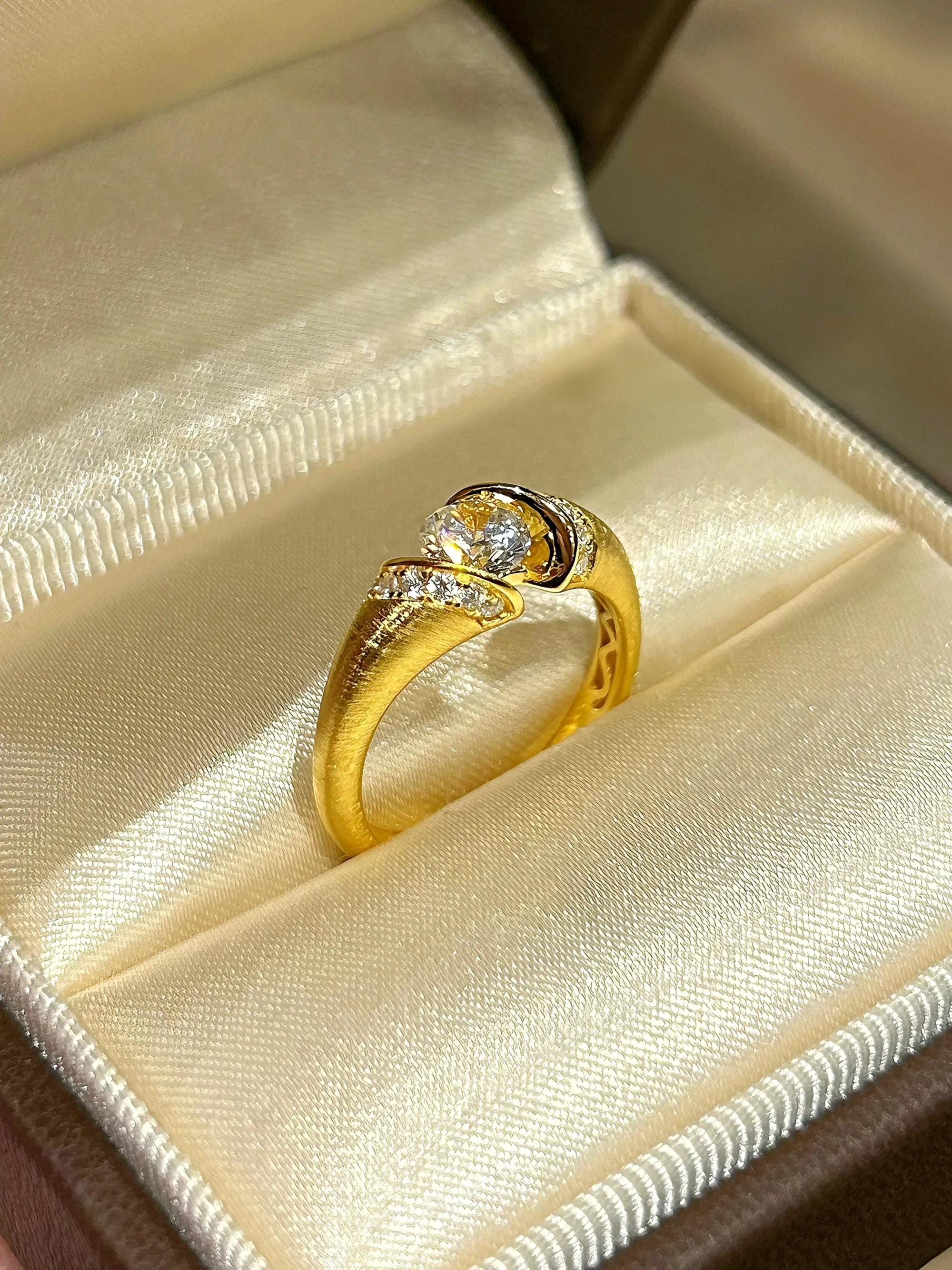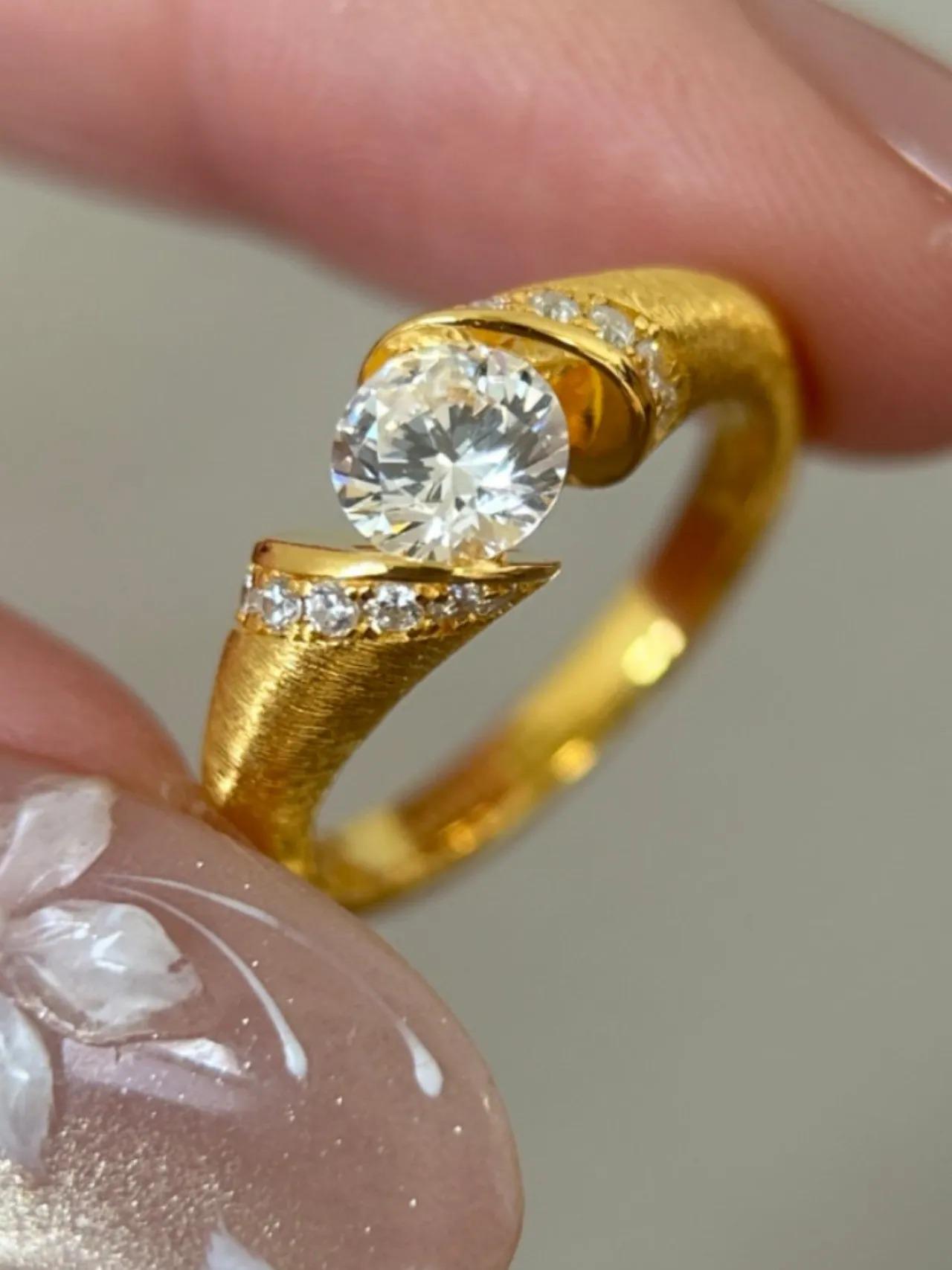 🔍 Why Choose This Ring?** ✅ Floating diamond illusion for amplified sparkle ✅ Hypoallergenic & long-lasting thick plating ✅ Brushed texture + accent diamonds = unmatched sophistication ✅ Lab-grown diamond = ethical luxury at an affordable price