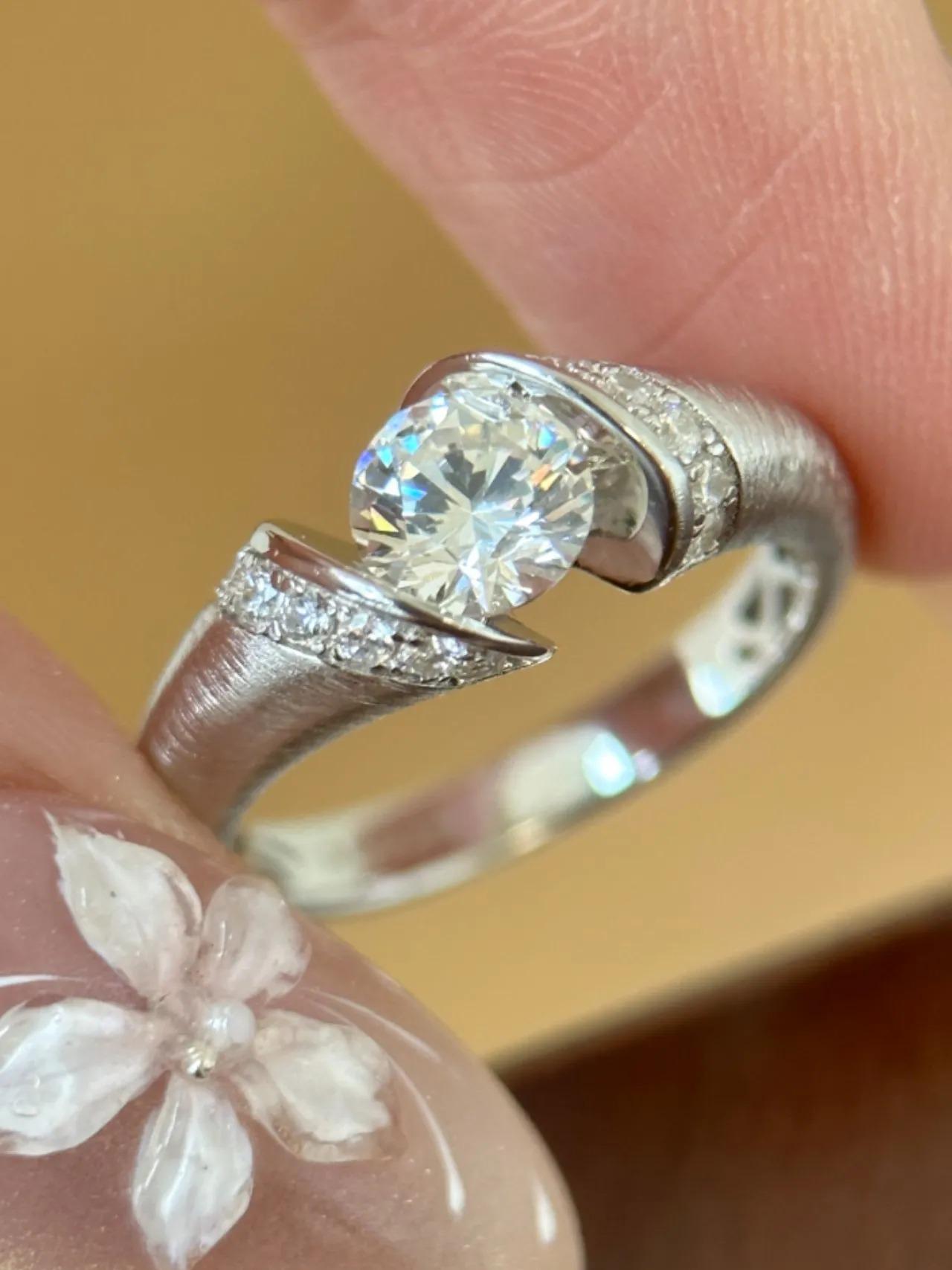 ✨ Captivating Design & Sparkle** Experience the magic of "unrestrained brilliance" with our innovative floating solitaire ring. Featuring a 5.5mm (60ct) 5A lab-grown diamond, this stunner uses claw-free tension setting to create an illusion of weightless sparkle. The round brilliant cut maximizes light reflection, while the brushed silver band adds a soft, silk-like texture—elevated by delicate accent diamonds for understated luxury. A rare find for those who crave unique, non-clichéd elegance.